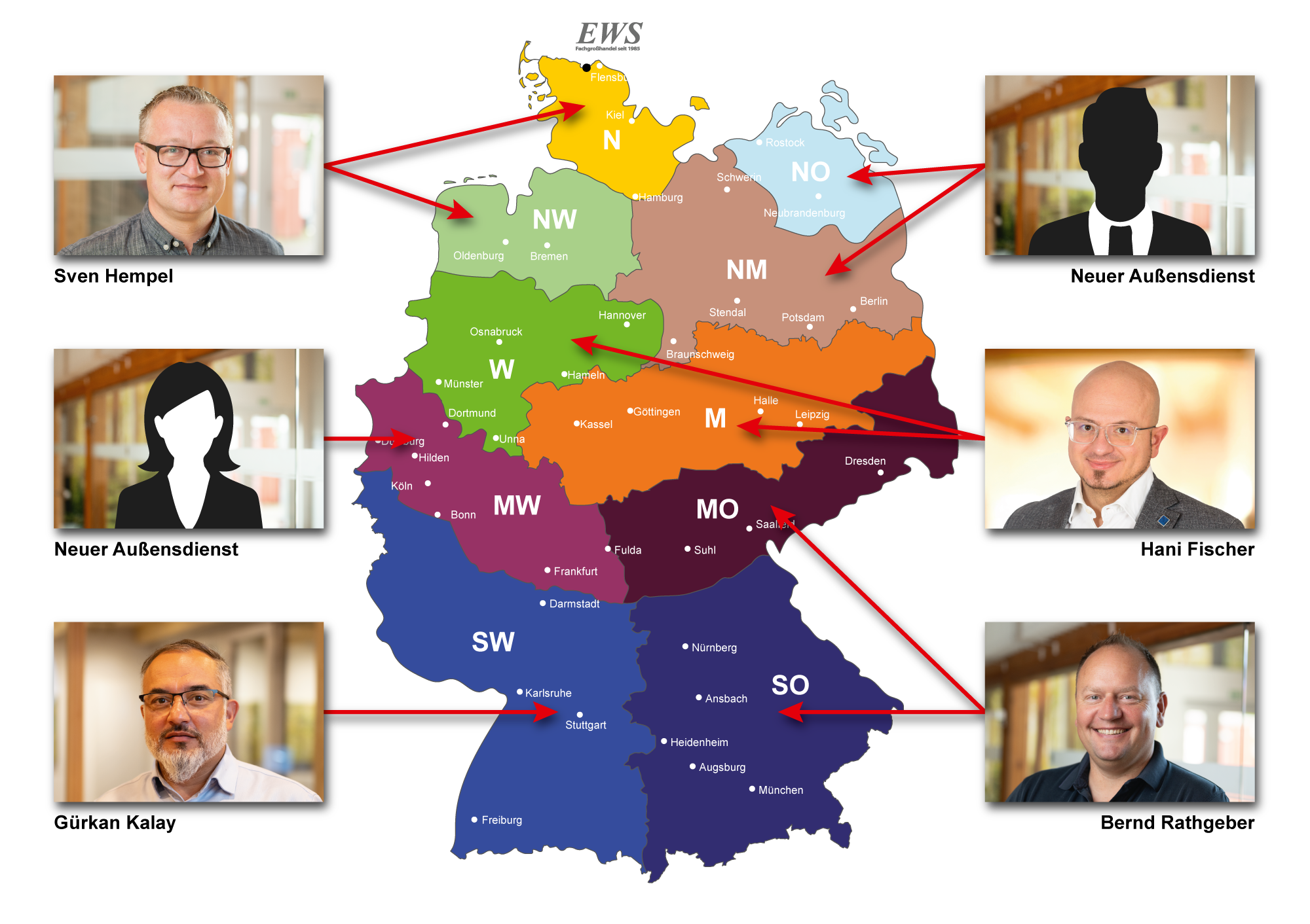 Vertriebsaußendienst im EWS-Vertriebsgebiet MitteWest ( Nordrhein-Westfalen & Hessen ) und Nordost / Nordmitte ( Raum Brandenburg, Berlin, Mecklenburg-Vorpommern )