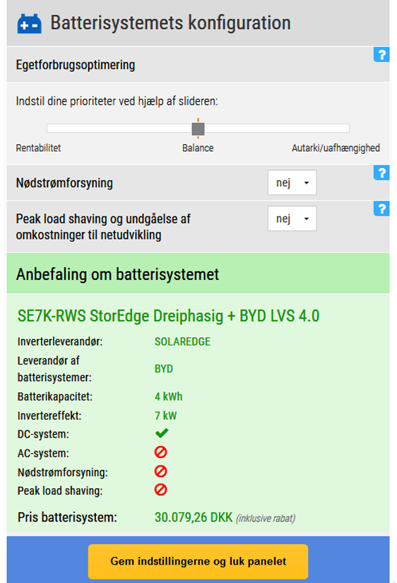 • Seriøse anbefalinger til komplette batterisystemer i forhold til forbrugsprofilen
