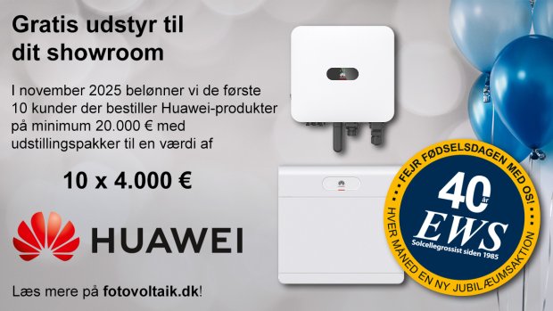 - Præmierne uddeles til de første ti fagvirksomheder, der i november 2025 bestiller Huawei-komponenter for minimum 20.000 €.