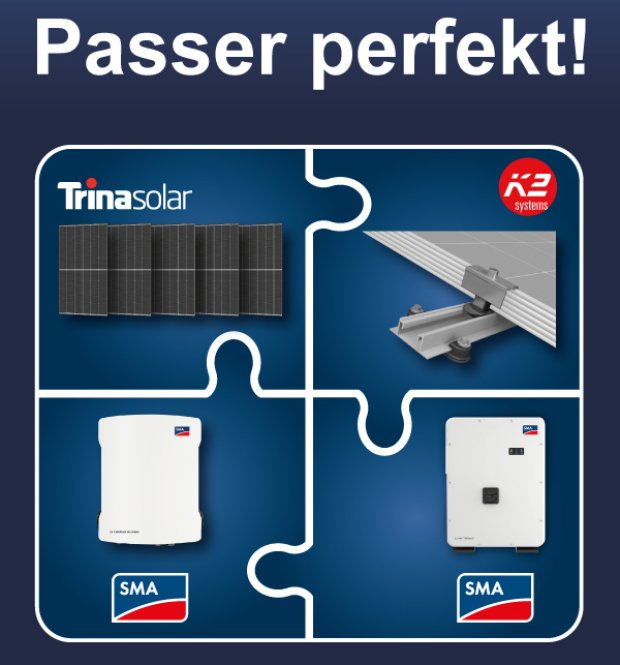 Trina Solar er en global udbyder af integrerede solcelleløsninger. Virksomheden blev grundlagt i 1997 og er nu aktiv i mere end 100 lande og regioner. Trina Solar udvikler solcellepaneler, batterisystemer, intelligente system- og operatørløsninger og tilbyder sine kunder skræddersyede koncepter til systemintegrationen. Solcellemodulet Vertex S+ NEG9R.28 med avanceret N-type celleteknologi er pga. dobbeltglas særligt stabilt og holdbart. Med op til 450 Wp har dette panel et stort output på trods af små dimensioner. Producenten giver 25 års produktgaranti og 30 års effektgaranti på modulet.