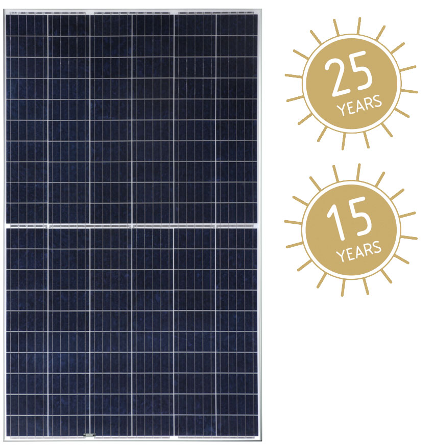 The half-cell architecture of the ECO Line Half-Cell Series provides for a lower resistive power and an increase of the total reflection, which results in a higher power output. Luxor grants a 15-year product and 25-year linear output warranty on the Eco Line M120 and P120 Half-Cell, with at least 85.0 % of the rated output in the 25th year.