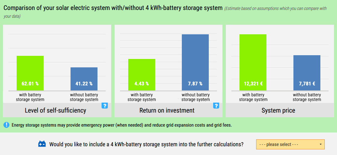 - Comparison of PV systems with/without a storage solution as a decision aid for the end customer