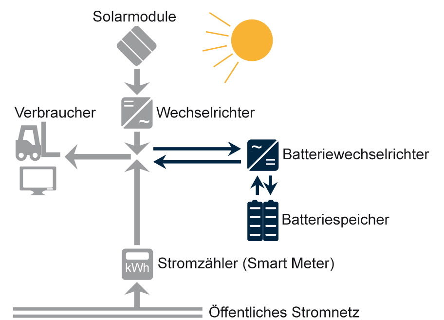 Nutzen Sie mehr günstigen, selbsterzeugten Solarstrom und senken Sie Ihre Betriebskosten durch einen Stromspeicher.