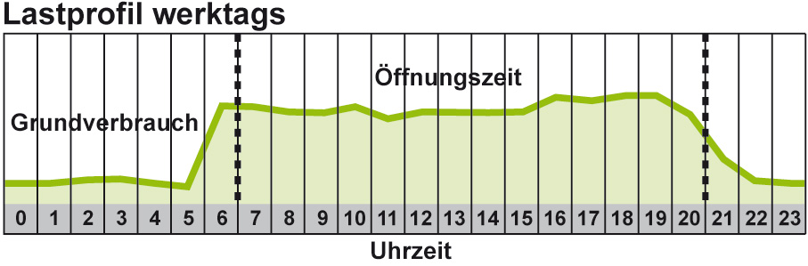 Ein Supermarkt ist ein typisches Beispiel für Gewerbe mit hohem Stromverbrauch am Morgen und in den Abendstunden, wenn die PV-Anlage nicht die volle Leistung bringen kann. Durch einen Gewerbespeicher konnte in diesem Fall der Eigenverbrauchsanteil des günstigen Solarstroms deutlich erhöht und der Netzbezug zu Hochlastzeiten reduziert werden.