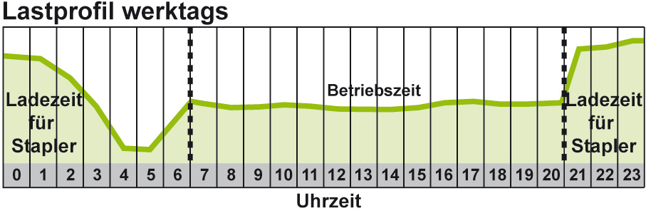 Stromkosten sind je nach Art und Größe des Betriebs ein entscheidender Faktor in den Bilanzen vieler Unternehmen. Eine PV-Anlage kann diese Kosten einfach und sicher reduzieren, jedoch nur in sonnenreichen Zeiten. Morgens und abends, wenn die Sonne noch nicht ihre volle Kraft hat, bleibt man vom teuren Strombezug aus dem Netz abhängig, während zur Mittagszeit der günstige, überschüssige Solarstrom ins Stromnetz eingespeist wird.