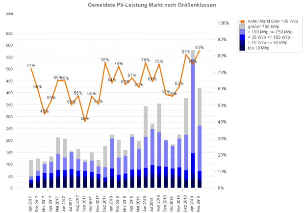 Mit einem PV-Zubau von 418,676 MWp wurde im Februar 2019 erneut ein starkes Ergebnis erzielt.