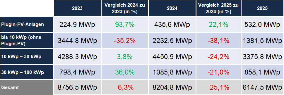 Anlagen unter 100 kWp seit zwei Jahren rückläufig
