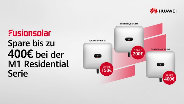 1. Promotion: Bis zu 400 € auf SUN2000-M1 Hybrid-Wechselrichter sparen