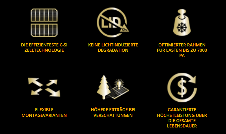 - LID-freie Zelltechnologie: die namensgebenden N-Typ-Zellen sorgen dafür, dass keine lichtinduzierte Degradation der Zellen auftritt.