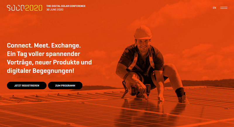 Am 30. Juni 2020 findet die SOCO 2020 statt, eine digitale Solar-Konferenz präsentiert von K2 Systems in Kooperation mit weiteren namhaften Branchengrößen wie Fronius, Trina Solar, SMA, REC, KOSTAL oder SolarEdge.