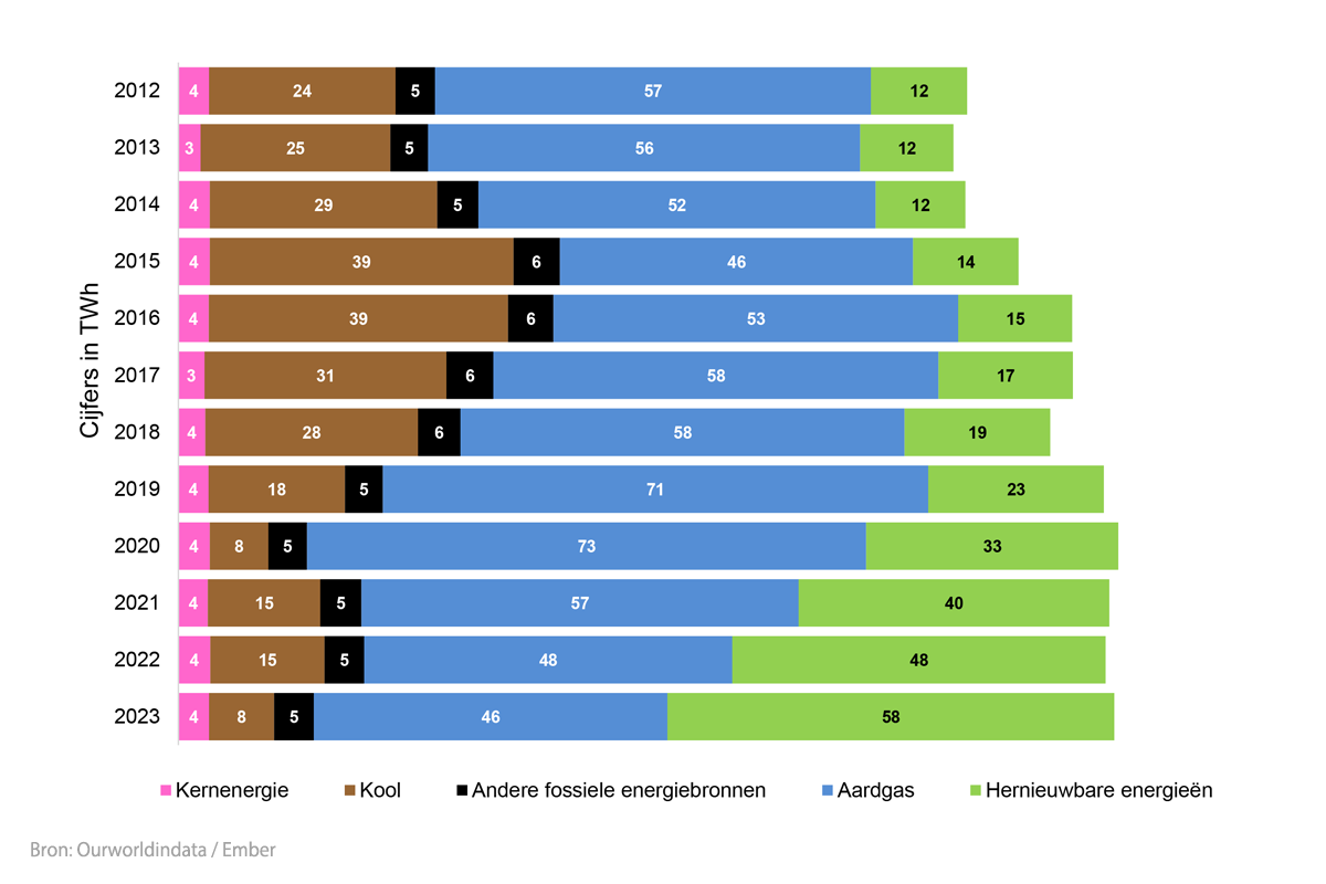 Wereldwijde elektriciteitsproductie per opwekkingstype