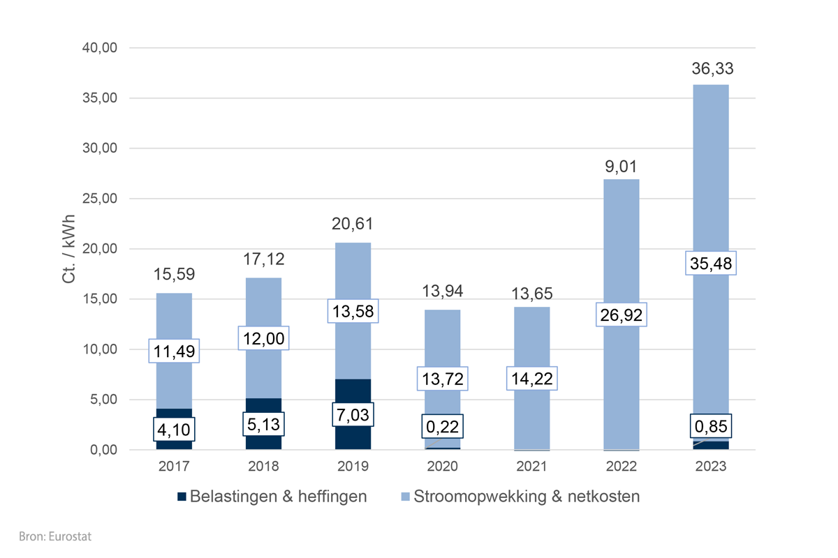Elektriciteitsprijs voor particuliere huishoudens in Nerderland 2017 – 2023