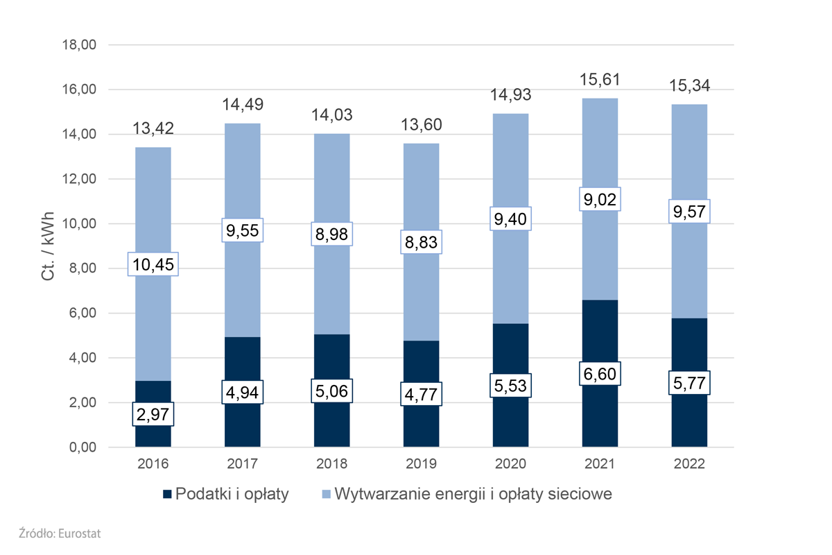Cena energii elektrycznej dla prywatnych gospodarstw domowych w Europie 2022