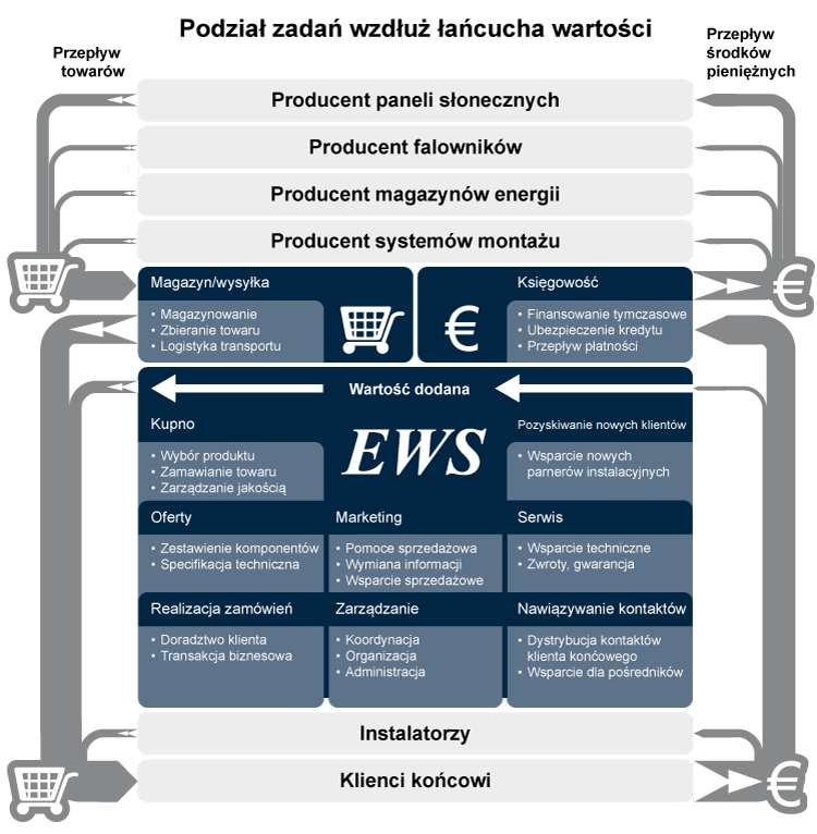 EWS działa jako ogniwo na wszystkich poziomach łańcucha wartości i wspiera wszystkich uczestników poprzez dalszy rozwój wydajnych struktur, procesów i procedur.