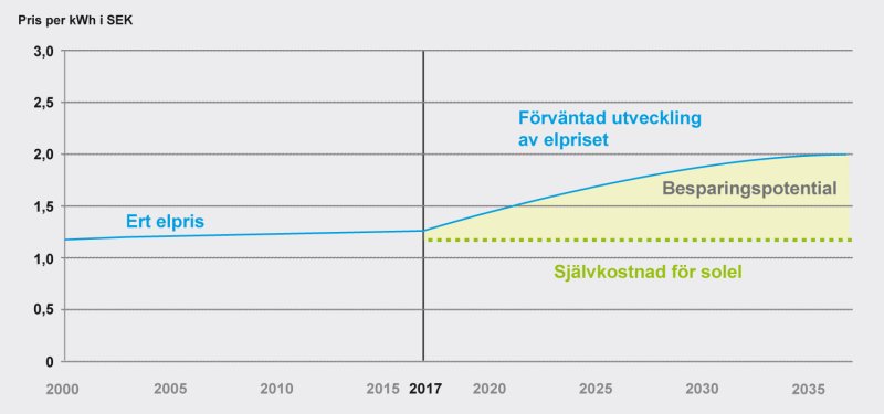 De senaste åren har elpriset stigit oavbrutet samtidigt som priset för solel har sjunkit drastiskt. Numera ligger priset för solel tydligt under det allmänna elpriset. Därför är det för allt fler husägare ekonomiskt lönsamt att investera i solceller och förse sig själva med egenproducerad elektricitet.