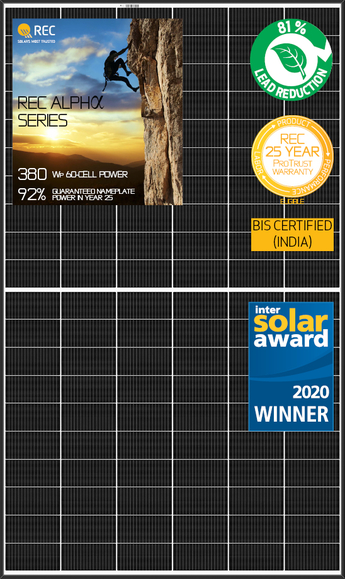 Juryn imponerades av de tekniska egenskaperna hos REC Alpha: ingen ljusinducerad degradering, hög verkningsgrad på 21,7 %, hög effektdensitet och en av de lägsta temperaturkoefficienterna på marknaden. Detta har vår mångåriga modulpartner uppnått genom användning av avancerade Heterojunction-halvceller (se även denna video) i kombination med den modernaste cellkontakteringstekniken. Resultatet är en produkt som levererar upp till 380 watt – och detta på ett synnerligen kostnadseffektivt och miljövänligt vis. Det här är andra gången sedan 2015 som REC lyckats vinna detta eftertraktade pris inom solcellsbranschen – en tydlig bekräftelse på den tydliga innovationskurs som bolaget tagit.