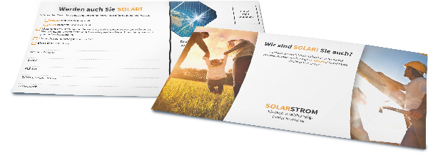 Med vårt solcellsargumentationskit har vi sedan en tid tillbaka kunnat erbjuda er ett kraftfullt marknadsföringsmaterial för specifik inriktning mot privatpersoner eller företag. Med hjälp av den generella basbroschyren „Vår styrka är SOLEN!“ samt de mer djupgående insättningsbladen sätts fokus på specifika framgångsfaktorer, önskningar och förväntningar från kunderna samt visar på lönsamheten med solceller med hjälp av olika fallstudier.