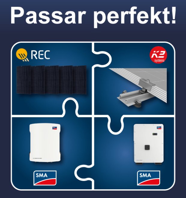 REC Group, som grundades år 1996 i Norge, är en av de ledande europeiska varumärkena för solcellspaneler. Företagets framgång beror på dess konsekvent höga kvalitetskrav på produkter, tillverkning, tillförlitlighet samt en ansvarsfull hantering av resurser längs hela värdekedjan. Glas-folie-modulen TwinPeak 5 Black med fullblack-design når upp till 410 Wp effekt med en verkningsgrad på 20,8 % och är extra robust tack vare en stark ramkonstruktion. För TwinPeak 5 erbjuder REC den omfattande REC ProTrust-garantin med 25 års garanti på produkt, prestanda och reparationer för alla installationer.
