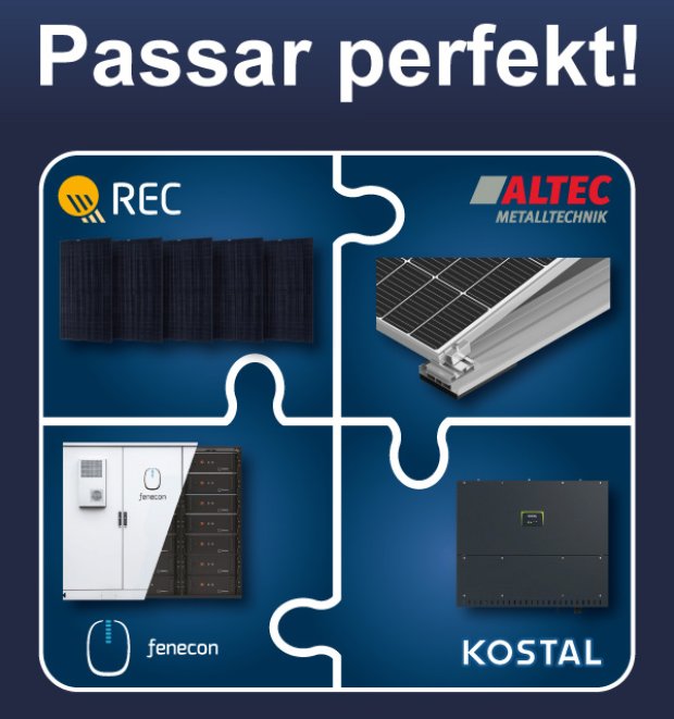 REC Group, som grundades år 1996 i Norge, är en av de ledande europeiska varumärkena för solcellspaneler. Företagets framgång beror på dess konsekvent höga kvalitetskrav på produkter, tillverkning, tillförlitlighet samt en ansvarsfull hantering av resurser längs hela värdekedjan. Glas-folie-modulen TwinPeak 5 Black med fullblack-design når upp till 410 Wp effekt med en verkningsgrad på 20,8 % och är extra robust tack vare en stark ramkonstruktion. För TwinPeak 5 erbjuder REC den omfattande REC ProTrust-garantin med 25 års garanti på produkt, prestanda och reparationer för alla installationer.