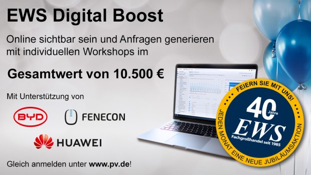 Mit unserer Januar-Aktion unterstützen wir Sie gemeinsam mit ausgewählten Herstellern in diesem Bereich – und bieten 7 Partnerinnen und Partnern den EWS Digital Boost im Wert von jeweils 1.500 €.