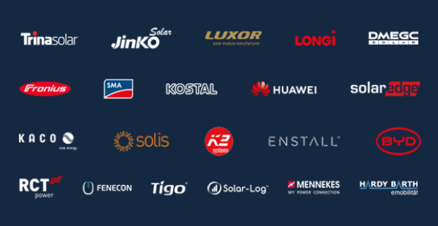 With more than 35 years of experience in the photovoltaic market, we assure the highest quality standards of the components used as well as their constant availability, thanks to efficient warehousing and delivery logistics. Our portfolio only includes market leading suppliers with many years of experience and reliable manufacturer's warranties.