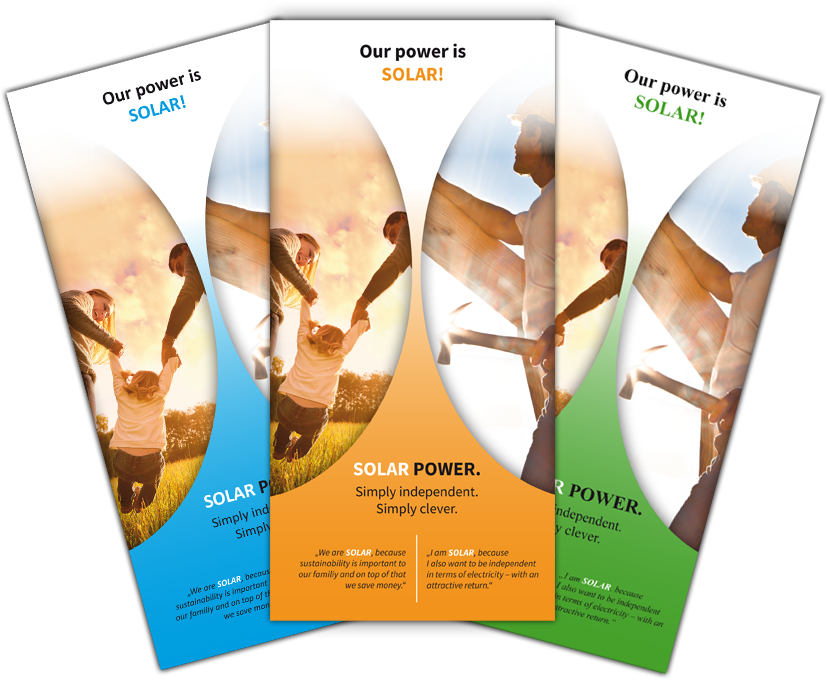 Self-generated solar power is a very popular solution for a sustainable and economic power and heat production as well as for electric mobility matters today. Potential customers often prefer to approach companies which are active in sectors such as energy, building design and financing, for instance: