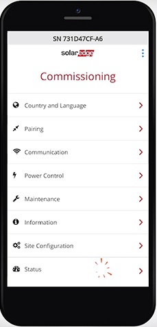 Sichere W-LAN Verbindung: Für den Verbindungsaufbau zwischen Smartphone und Wechselrichter muss nur der Barcode am Inverter gescannt werden. Eine Internetverbindung vor Ort ist nicht erforderlich. Über eine integrierte Ladebuchse am Wechselrichter können Smartphones mit niedrigem Akkustand darüber hinaus aufgeladen werden.- Automatische Aktualisierung und Aktivierung der Firmware: Im Anschluss wird die System-Firmware aktualisiert und die Anlage aktiviert. Dieses Feature erleichtert auch Updates bei bestehenden Anlagen. Die Aktualisierung der Wechselrichter-Firmware erfolgt automatisch über die SetApp, sobald der Installateur vor Ort ist.