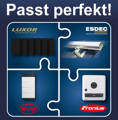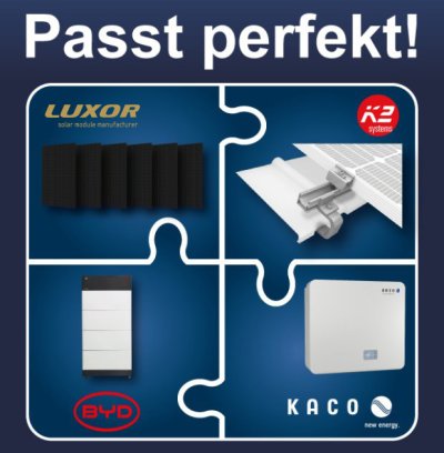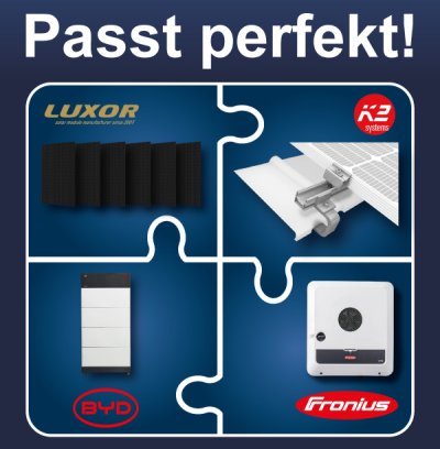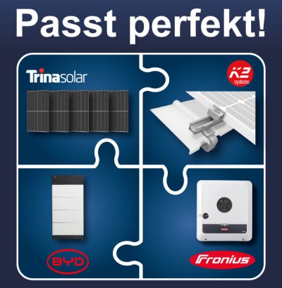 Die jeweilig kombinierten PV-Komponenten und Herstellermarken sind für Sie im weiteren Prozess der Anlagenplanung sowie in QuickShop voreingestellt, und können dort nach Belieben variiert werden.